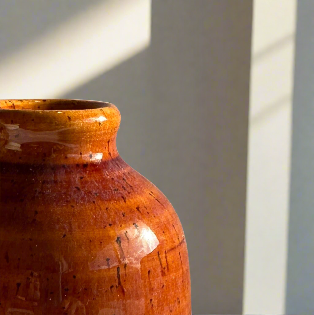 - speckled clay contrasted with glossy glaze